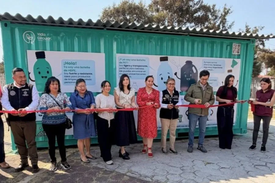 The first collection point was opened in Iztapalapa, a district in Mexico City. According to ALPLA, the collection point will impact around 30,000 people in the area and facilitate the separation of recyclable PET, HDPE, and PP bottles.