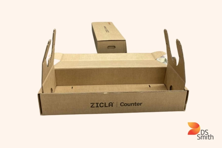 DS Smith’s solution includes two corrugated cardboard elements. One is an outer box with a tab-locking system for secure transportation without the need for adhesives and staples.